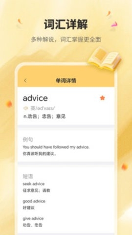 1、给你提供详细的词汇介绍,更好的用过释义来了解单词的内容意思。