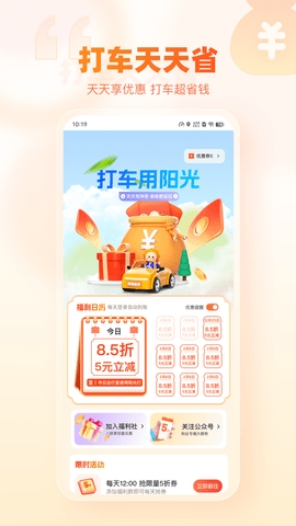 阳光出行APP是为方便大家出行提供的一款叫车软件,覆盖的范围十分的广泛,全国多个城市都可以使用的。大家输入起始地以及目的地就可以一键叫车,会有相应的司机师傅在线接单。涵盖的车型也是多样的,大家可以根据自己的需求来进行选择,车型不同价格也是有所不同的,而且不定期还会给大家发送优惠券,很是不错的。