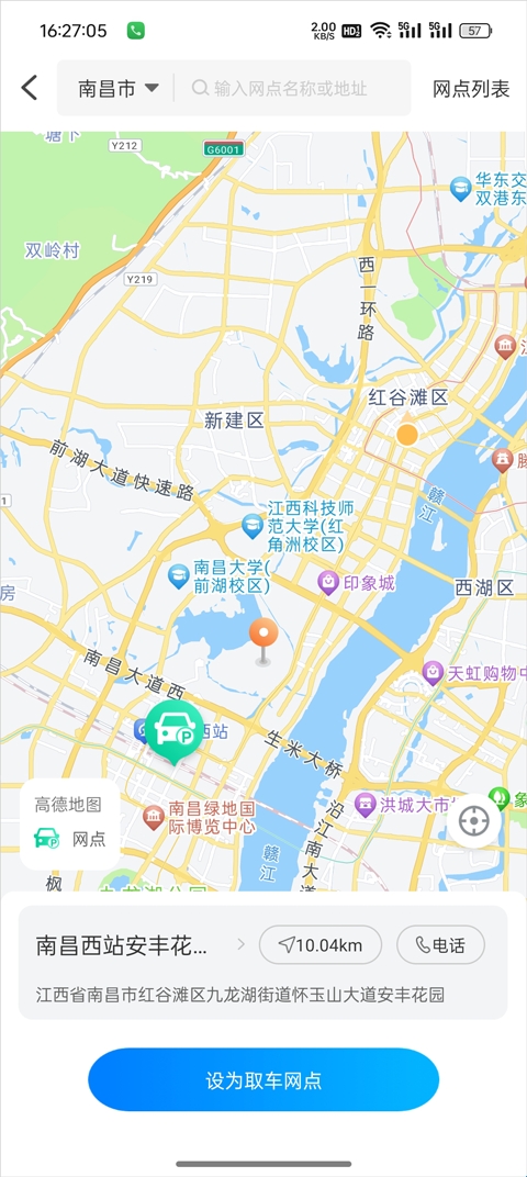 1、进入软件后选择你要取车以及还车的城市以及网点