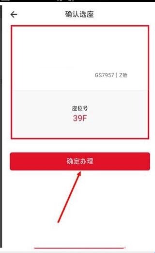 6、然后我们选择确认座位号之后,然后确认航班的信息也没有问题之后,那么我们可以选择点击“确定办理”的图标了。