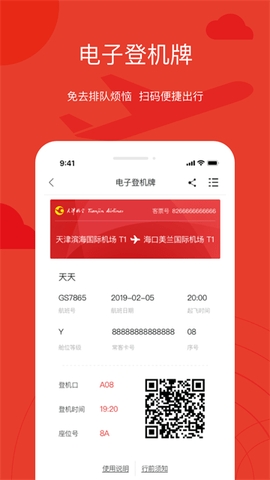 2、含有电子登机票为用户提供服务,可以代替纸质的登机票使用