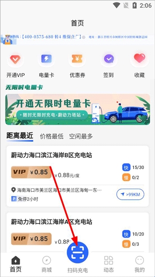 4、到达充电桩位置后,用户只需打开蔚动力充电扫码充电即可开始充电。