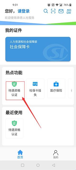 2、然后在主页面点击选择“待遇资格认证”,点击进入