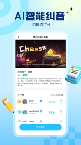 视频:还可以为不同的视频进行配音,锻炼口语能力。