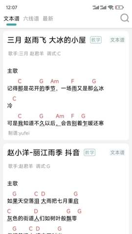 吉他谱APP是用户都在下载使用的一款琴谱学习软件,涵盖的琴谱信息内容是非常丰富全面的,能够满足大家的各种学习需求。可以将喜欢的谱子进行收藏,随时会打开学习,而且还提供有超多的视频讲解教学,让大家可以轻松的进行学习。该软件为大家提供的琴谱都是可以免费查看学习的,有需要的小伙伴快来本站下载学习吧!
