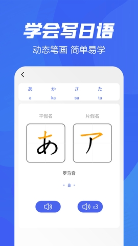 五十音特训APP是一款专业学习日语的平台,里面涵盖的相关学习资源是非常丰富全面的,能够满足不同用户的学习需求。划分的学习分类是非常细致的,可以有效地帮助大家进行日语的学习,而且还有动态笔画,简单易学,让大家可以轻松学会写日语单词,感兴趣的小伙伴快来本站下载体验吧!