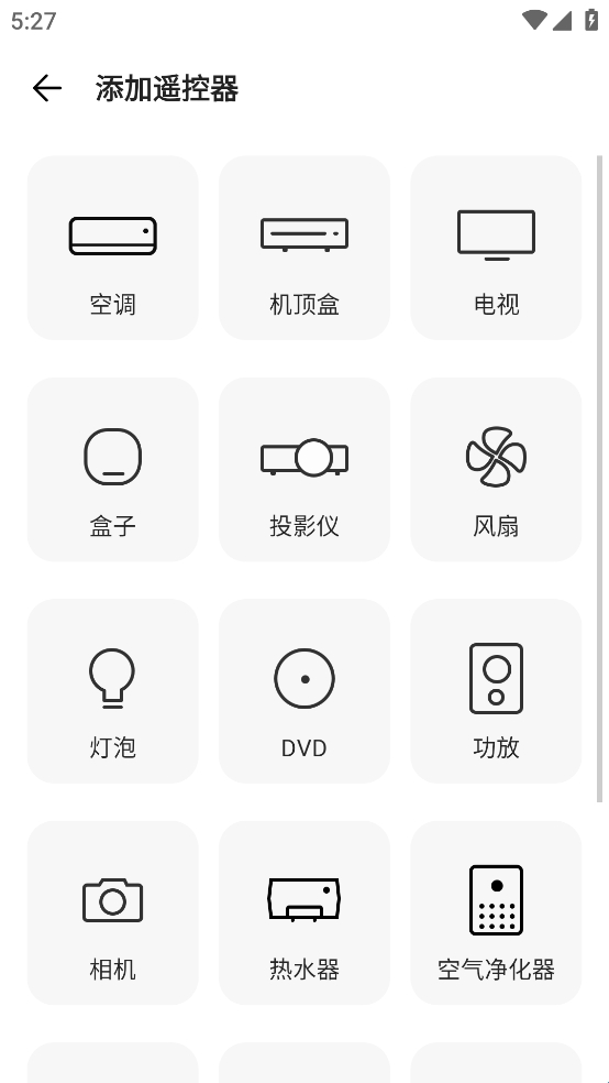 3、手动添加遥控需要选择电器的类型;