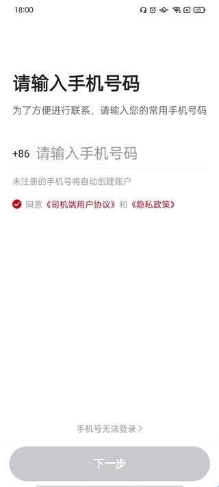 1、下载安装好携华出行司机端app,打开进入软件注册账号。