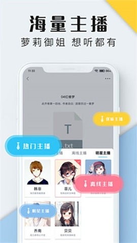 3、还会根据用户的喜好来挑选出喜欢的主播,使用主播的声音来阅读用户喜欢的小说。