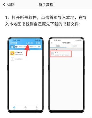 1、打开听书软件,点击首页导入本地,在导入本地图书找到自己原先下载的书籍文件。