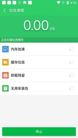 1、第一次进入软件主界面后,点击垃圾清理对手机进行内存垃圾与结存垃圾扫描