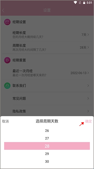 3、点击经期长度和周期长度就可以重新修改经期了。