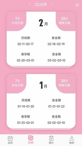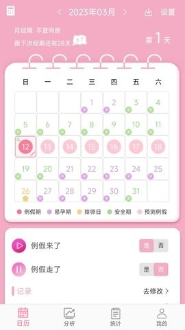 1.[科学预测]通过提供月经周期的间隔和长度,可以科学地自动确定安全期,危险期和月经期;