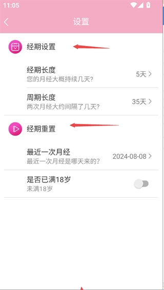 2、可以重新设置经期时间以及重置经期。