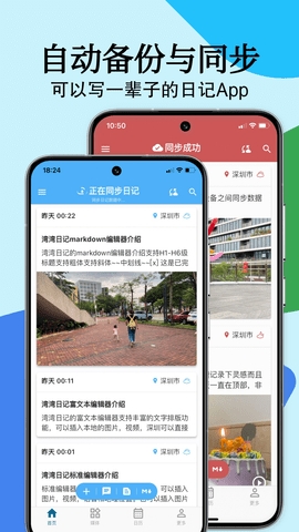 自动信息获取:日记中自动包含地理位置、天气等信息,并可手动修改。