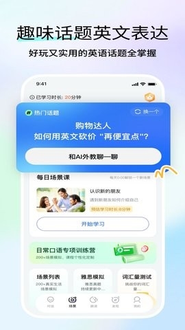 拥有广泛的学习场景,为用户提供了在不同情况下练习口语的机会,从在餐厅点餐到在机场登机。